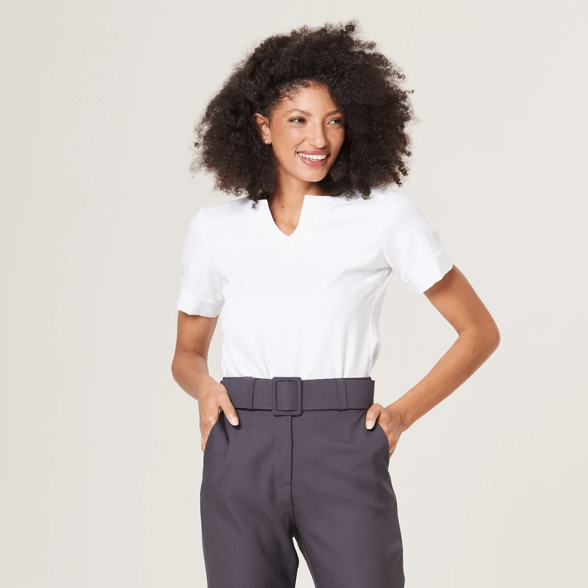 Alongamento da Silhueta - O seu decote V alonga visualmente o pescoço e o torso, criando uma sensação de altura e elegância.