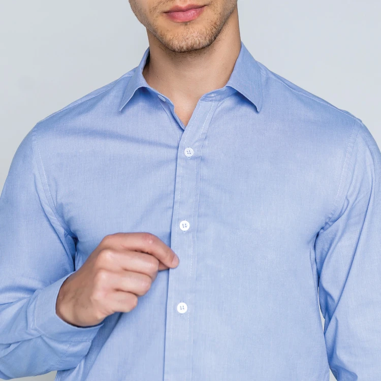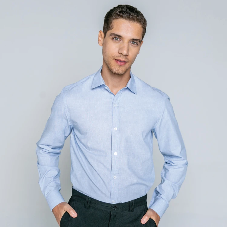 A camisa também apresenta uma gola social, que é mais estruturada, o que confere um toque de sofisticação ao visual.