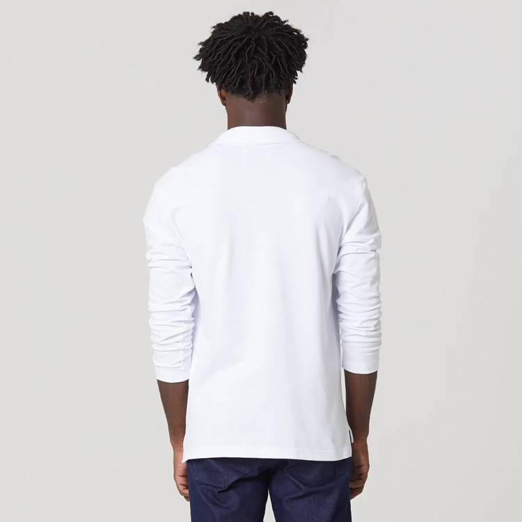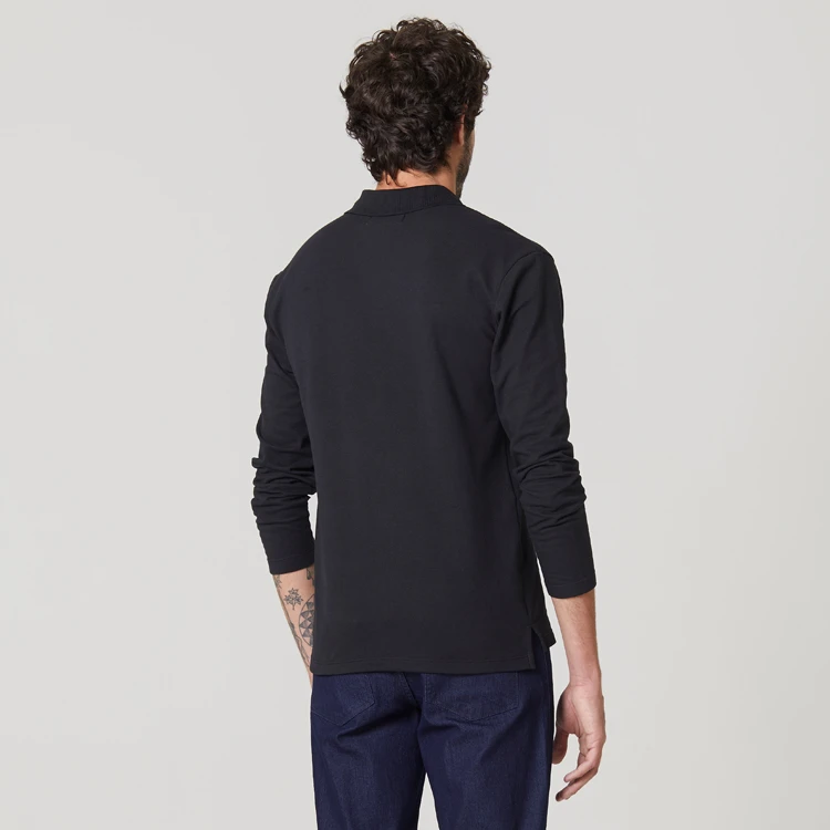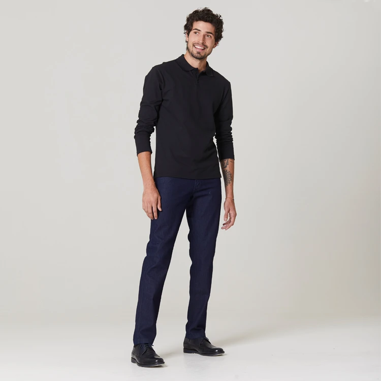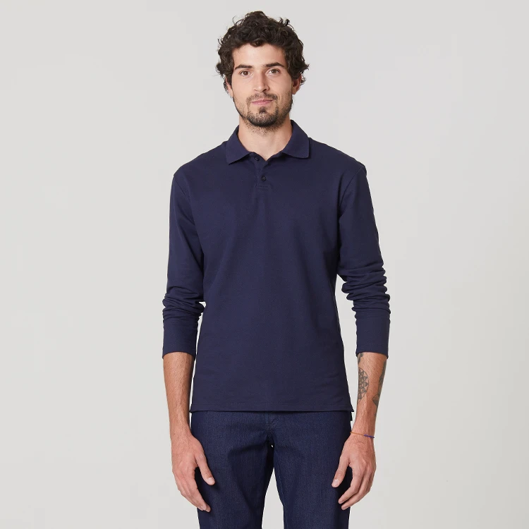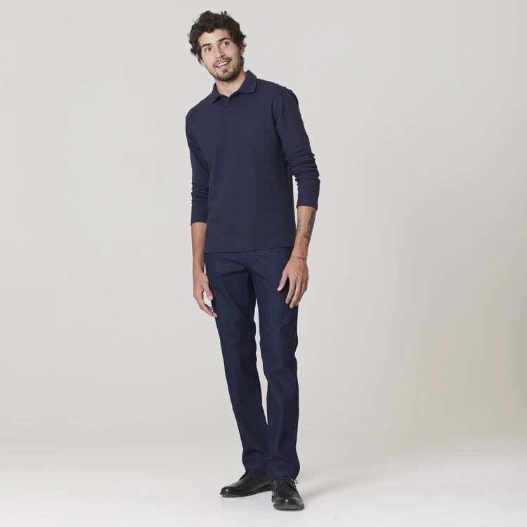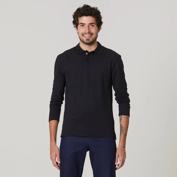 Camisa Polo Manga Longa Masculina Gil é uma opção básica e atemporal para compor qualquer uniforme de trabalho que equilibre um visual elegante com o ambiente descontraído.