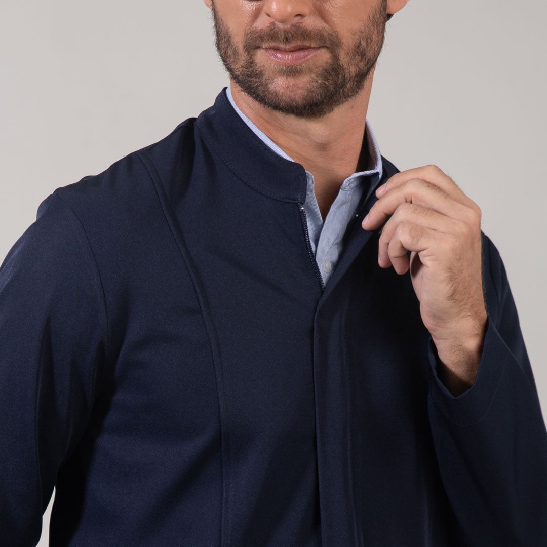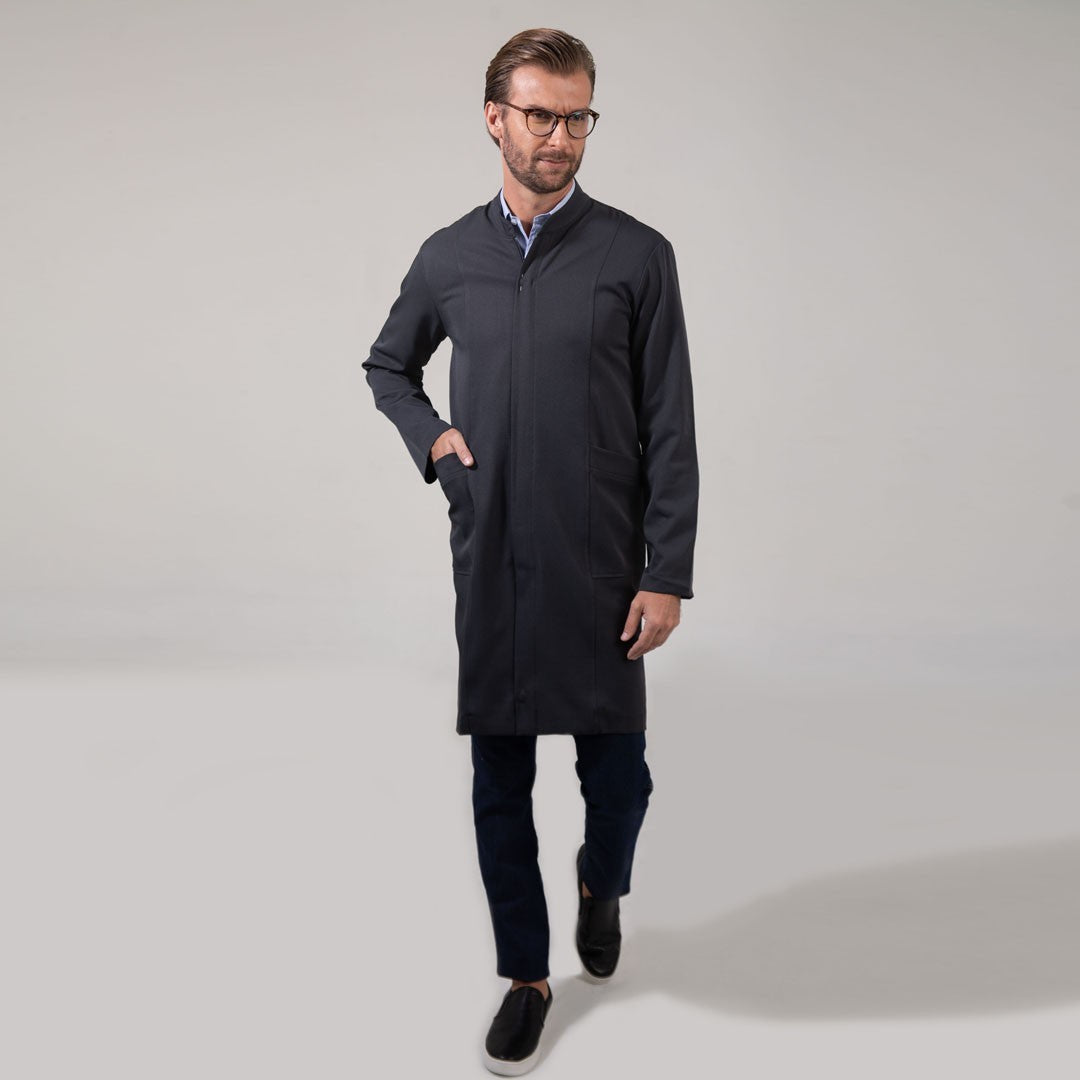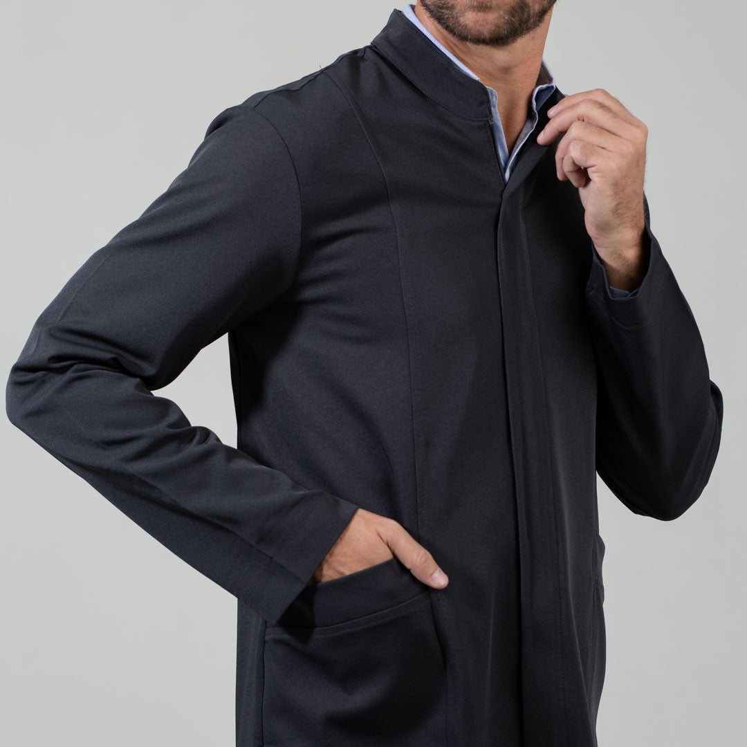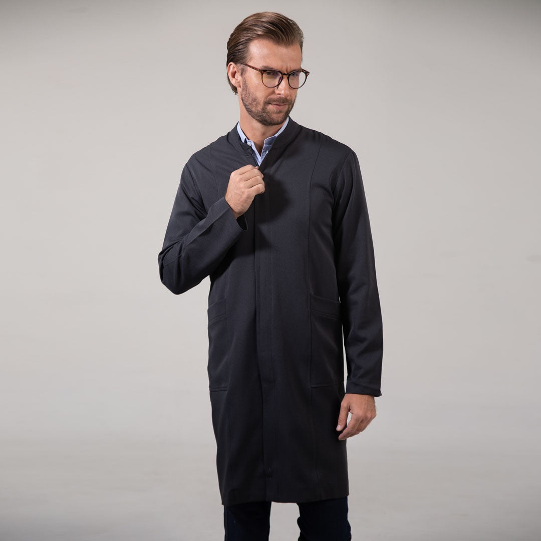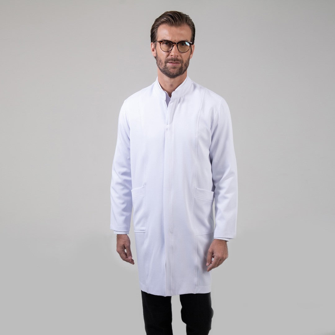 Fechamento frontal com zíper - O fechamento frontal com zíper permite uma colocação e remoção rápida e conveniente do jaleco. Os botões são fáceis de manipular e proporcionam um ajuste seguro.