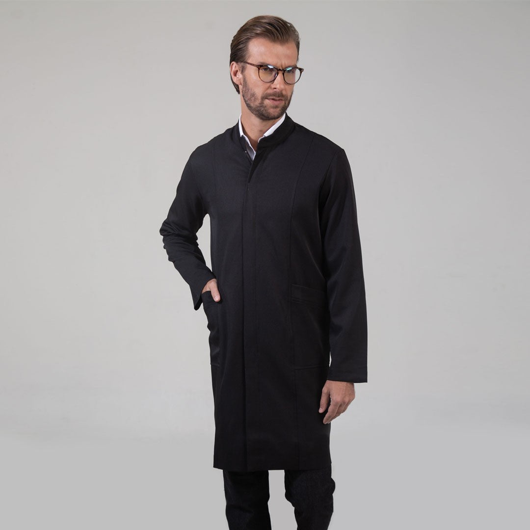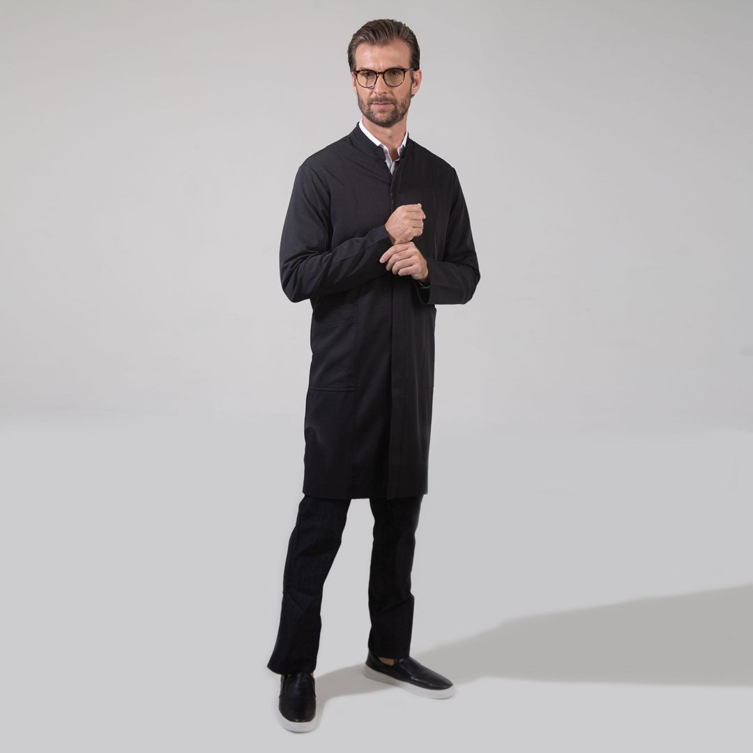O Jaleco Masculino Gola Padre Max é uma peça especialmente projetada para profissionais da área da saúde. Ele é confeccionado com manga longa, oferecendo cobertura e proteção aos braços.