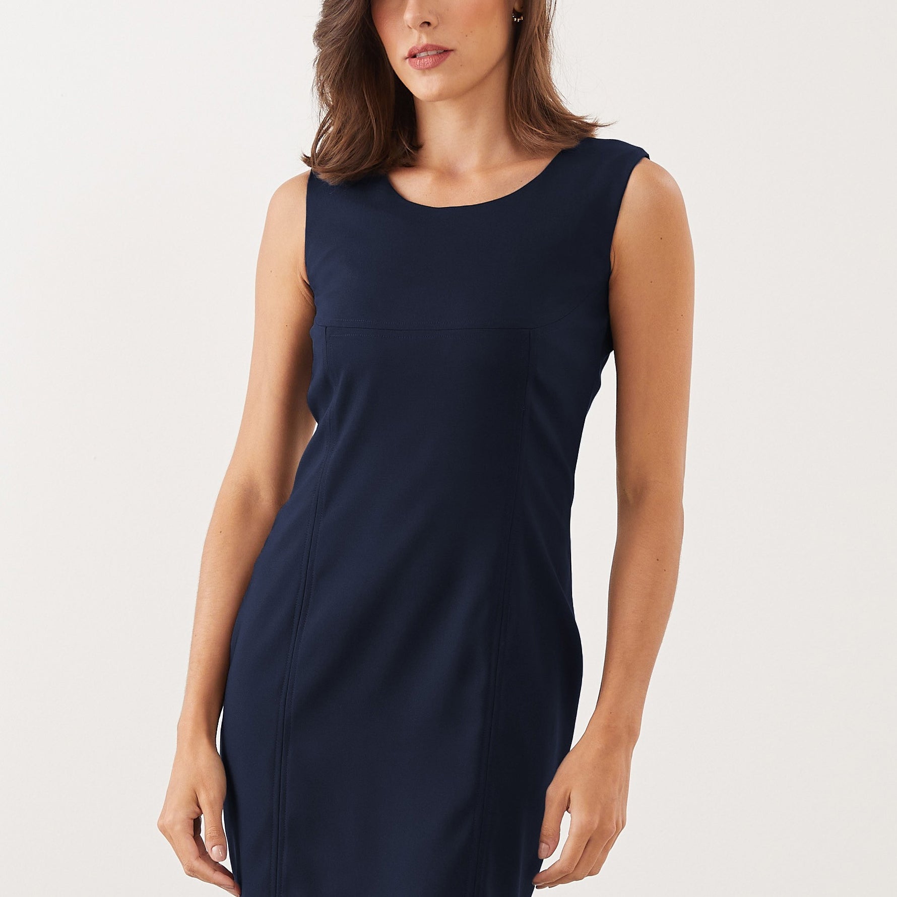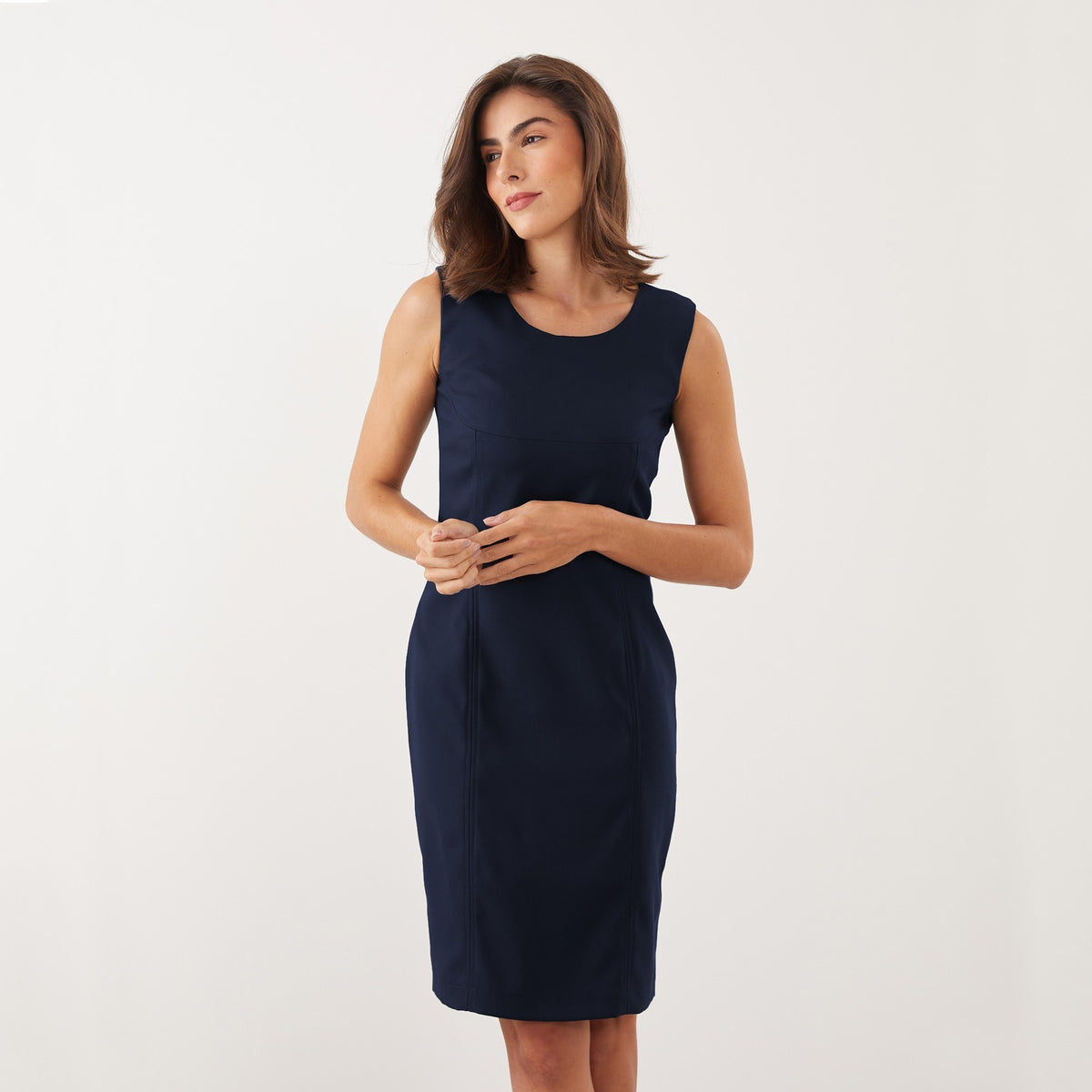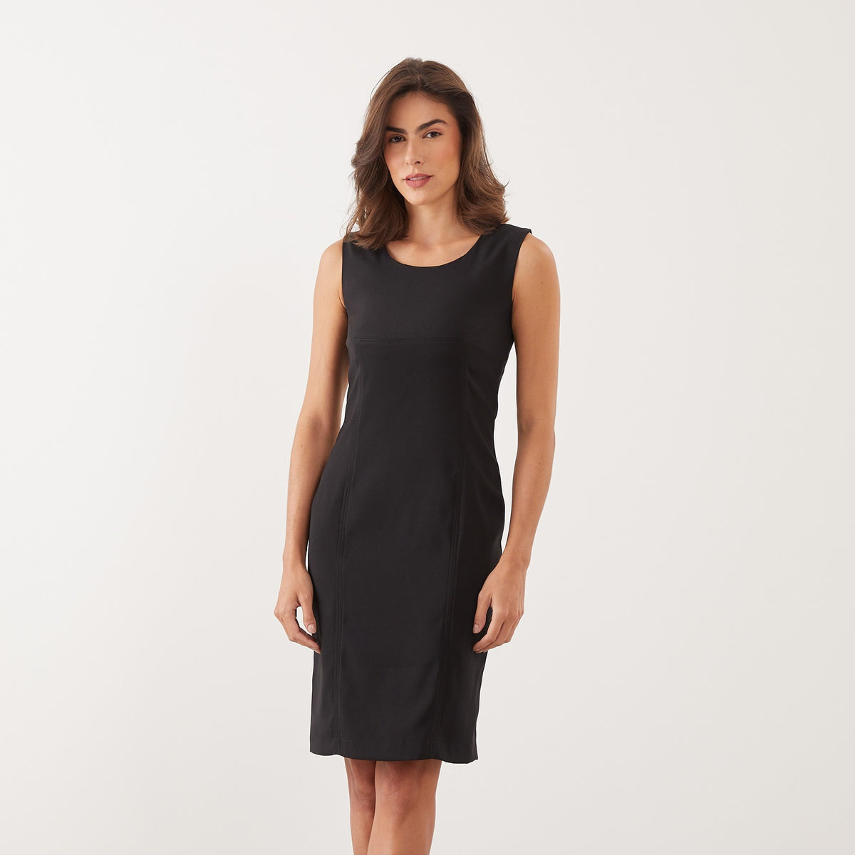 O Vestido Reto Natália é uma peça com design clássico com o caimento acinturado, tornando-o um vestido básico atemporal, perfeito para combinar com diversos estilos e acessórios.